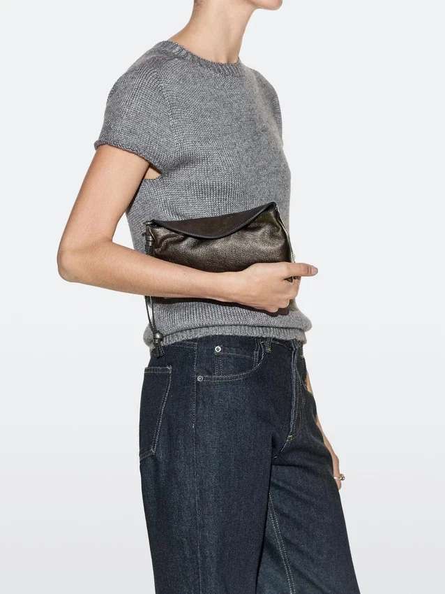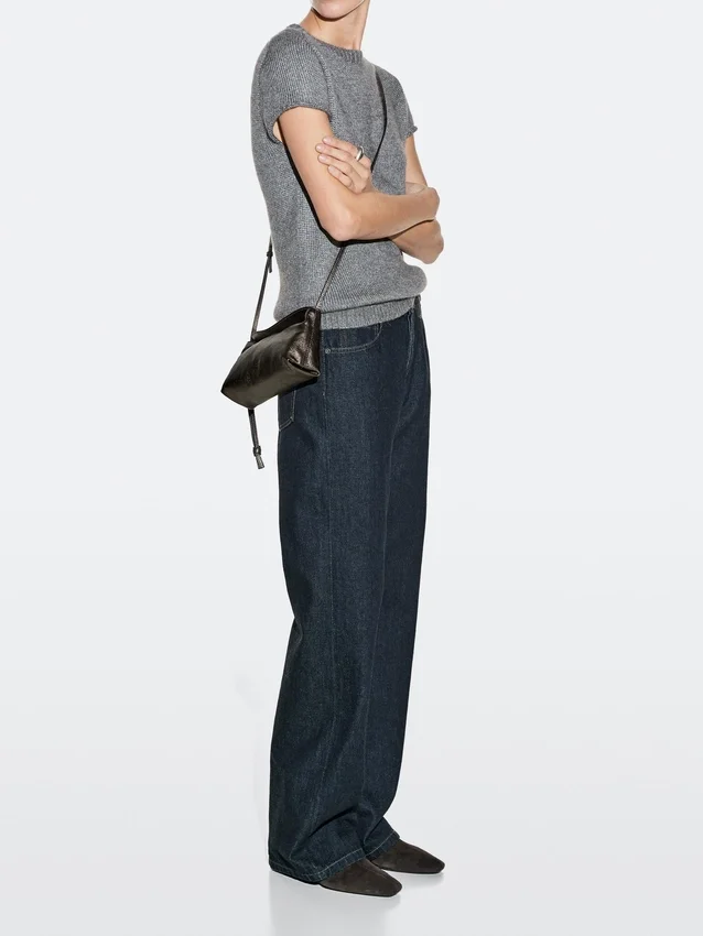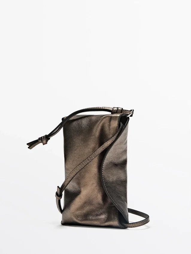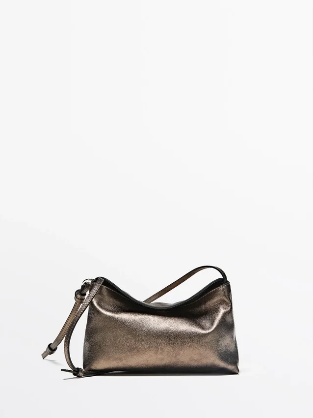 Handväska tillverkad av nötläder. Tunn axelrem. Flik med dold magnetknäppning.