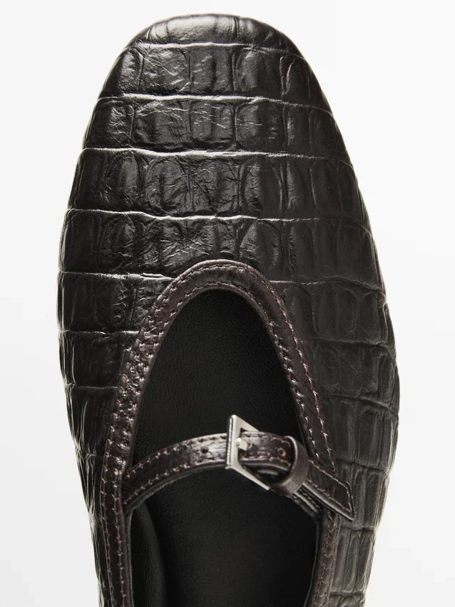 Mjuka ballerinaskor i imiterat krokodillskinn