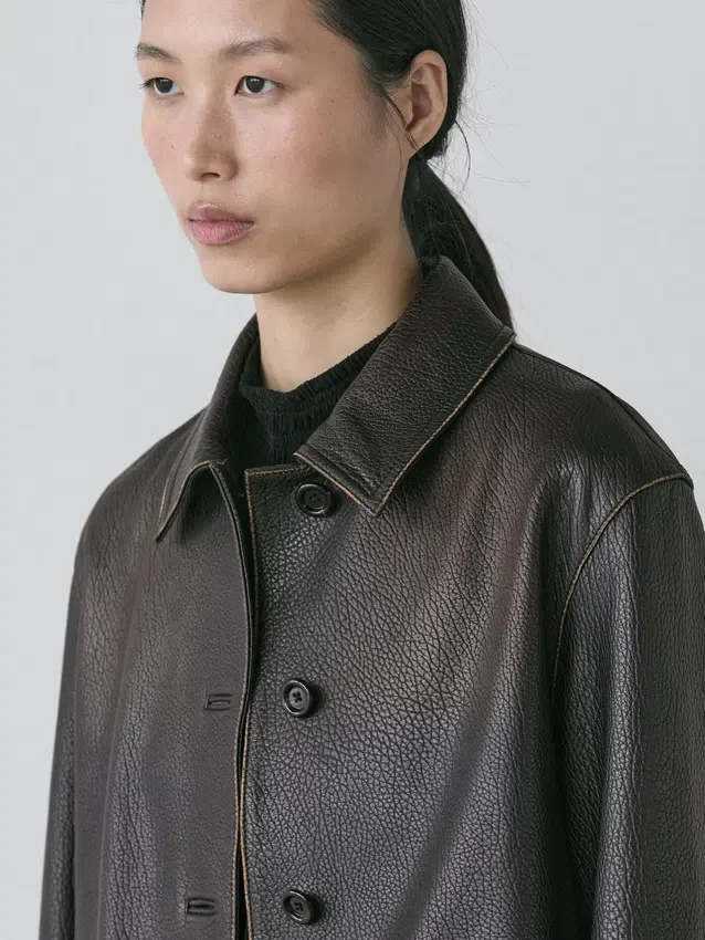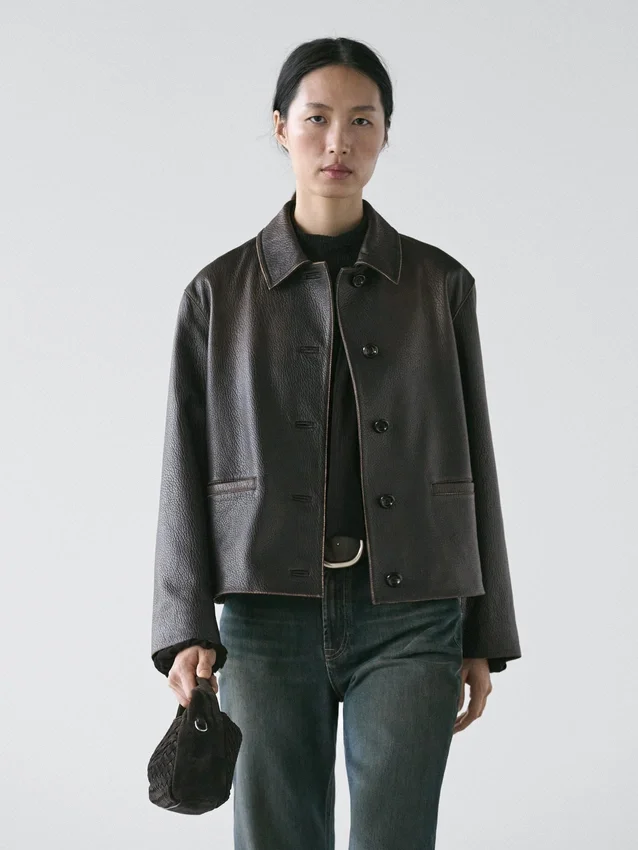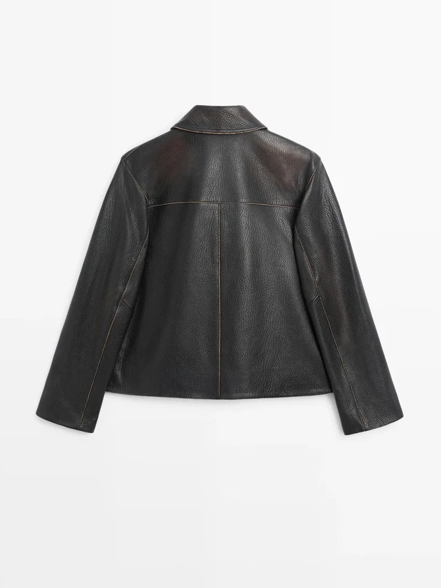 Kort jacka. Skjortkrage. Långa ärmar. Två sidfickor. Fodrad. Sliten effekt.