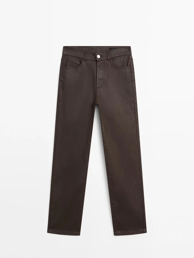 Byxor med raka ben: Rak silhuett från midjan till fotleden, utan ytterligare justeringar av benen. Hög midja. Knäppning framtill. Femfickdesign.Sammansättning