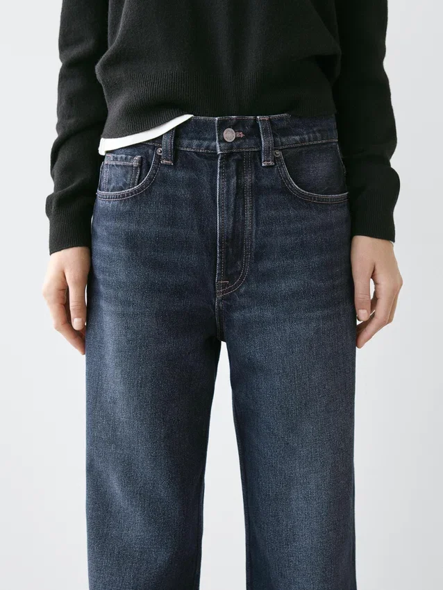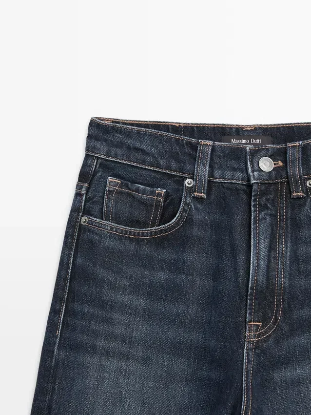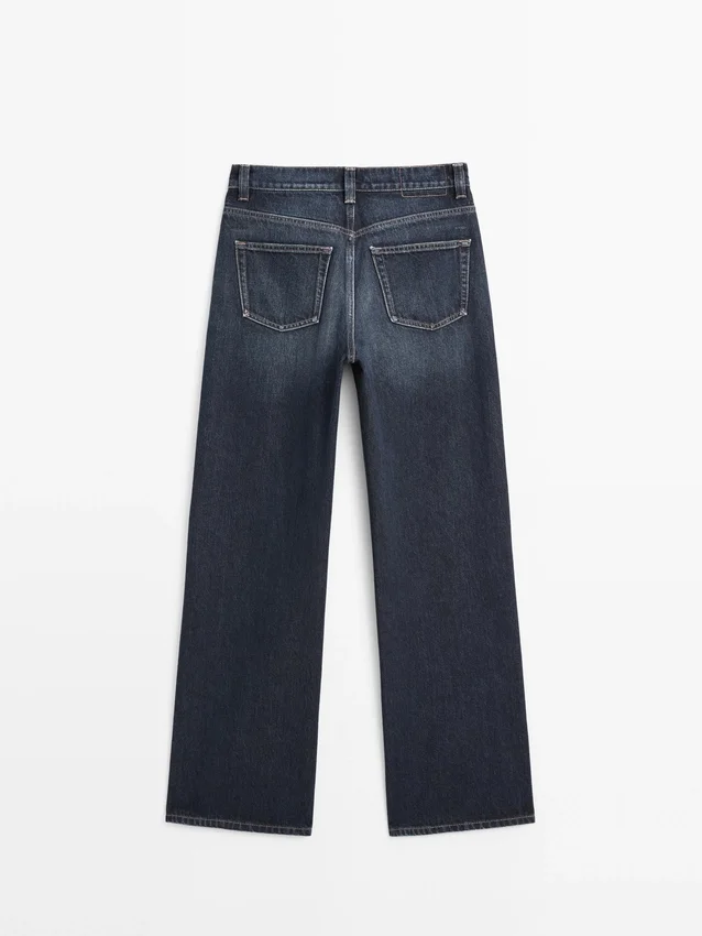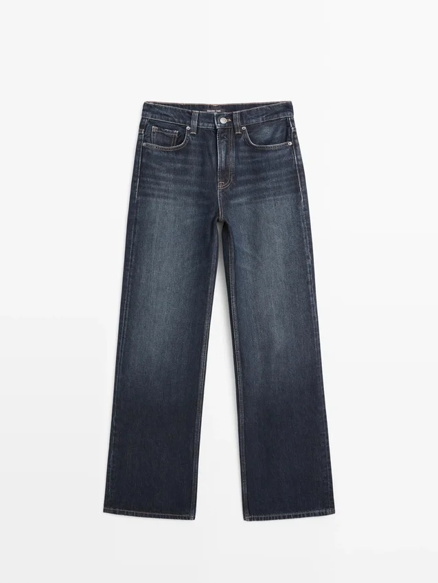 Jeans med vida ben: Denna modell har en vid och lös passform från höft till ankel, vilket ger komfort. Hög midja. Dragkedja fram och knäppning upptill. Design med fem fickor.