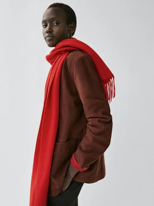Halsduk tillverkad av 100 % kashmir. Fransar. . Mjukt tyg som är behagligt att ta på .