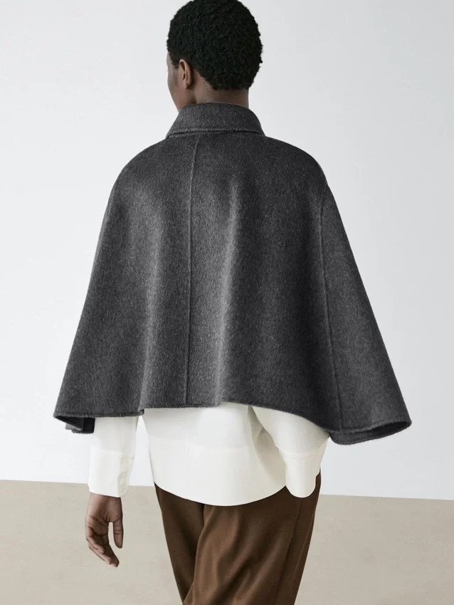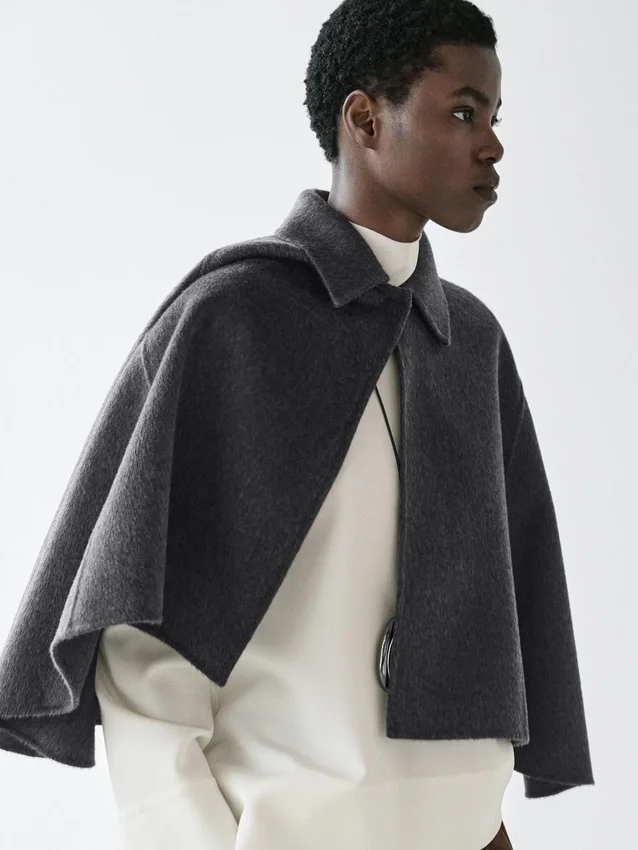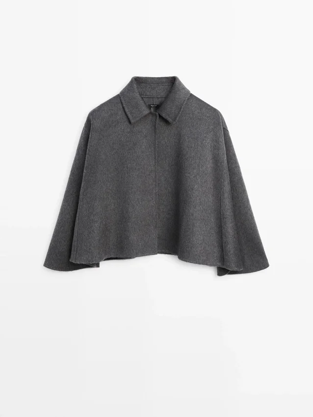 Kappa i ullblandning. Skjortkrage. Knäppning med knappar och dolda knappar på axelremmarna.