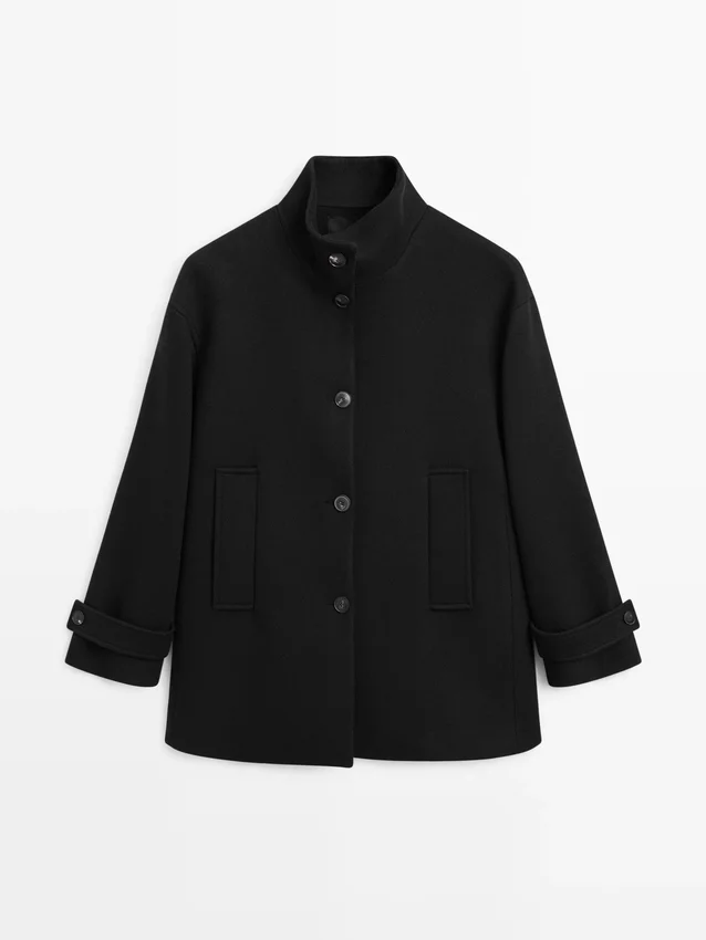 Kappa tillverkad av ett tyg i ullblandning. Långa ärmar. Manschetter med knappade flikar. Knappning fram. Två sidfickor. Fodrad.