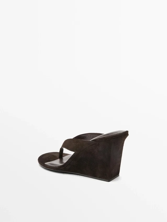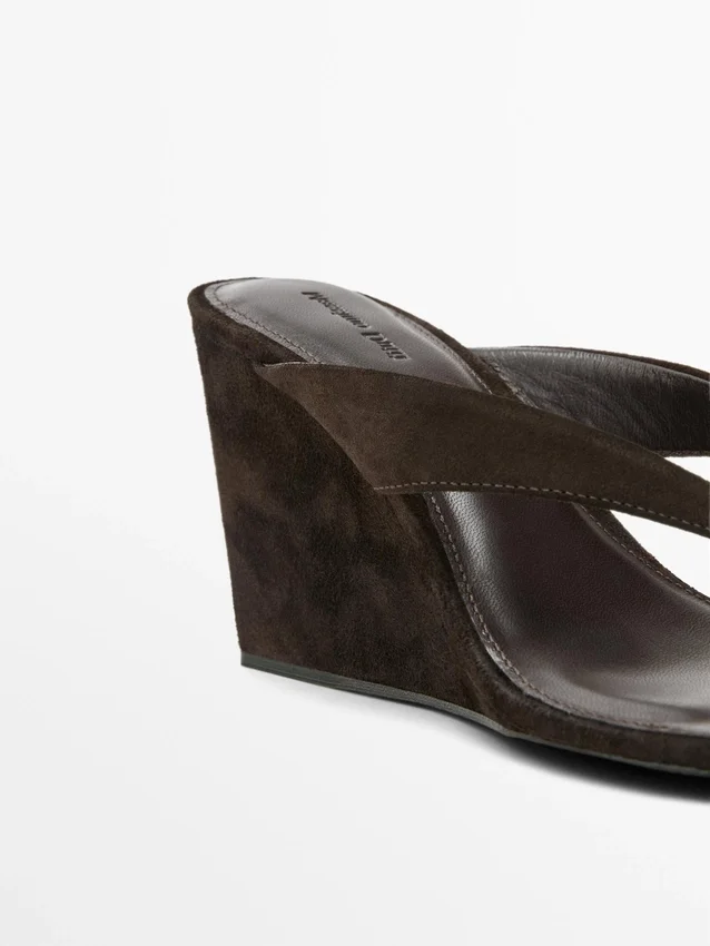 Tillverkade av nötläder med mockafinish. Foder och innersula i läder. Kilklack. Klack: 8 cm.