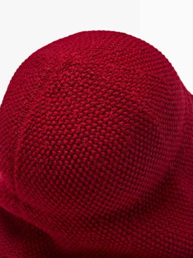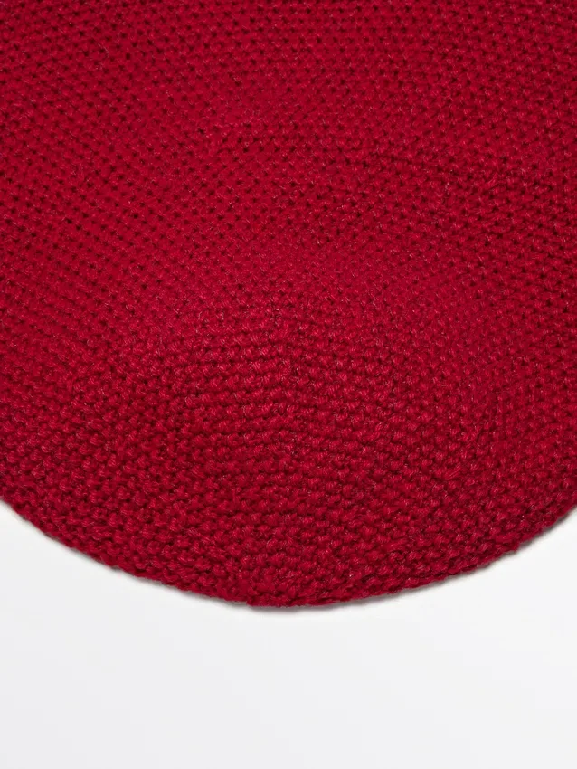 Mössa tillverkad av stickat tyg med texturerad ullblandning.
