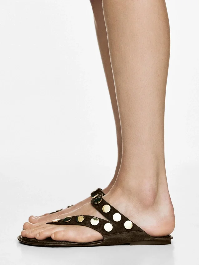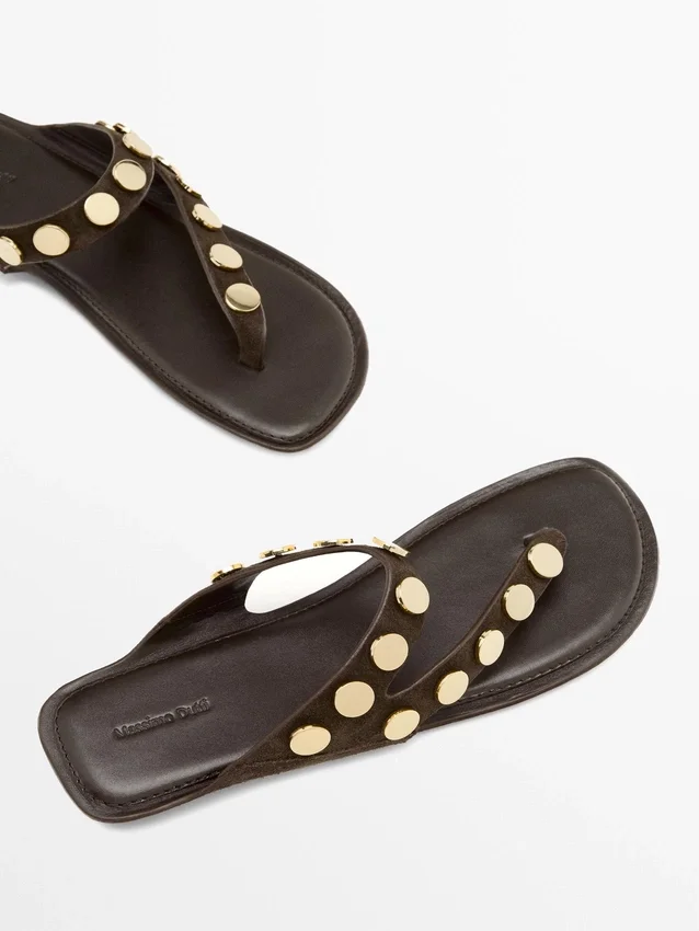 Sandaler i spaltläder med nitar