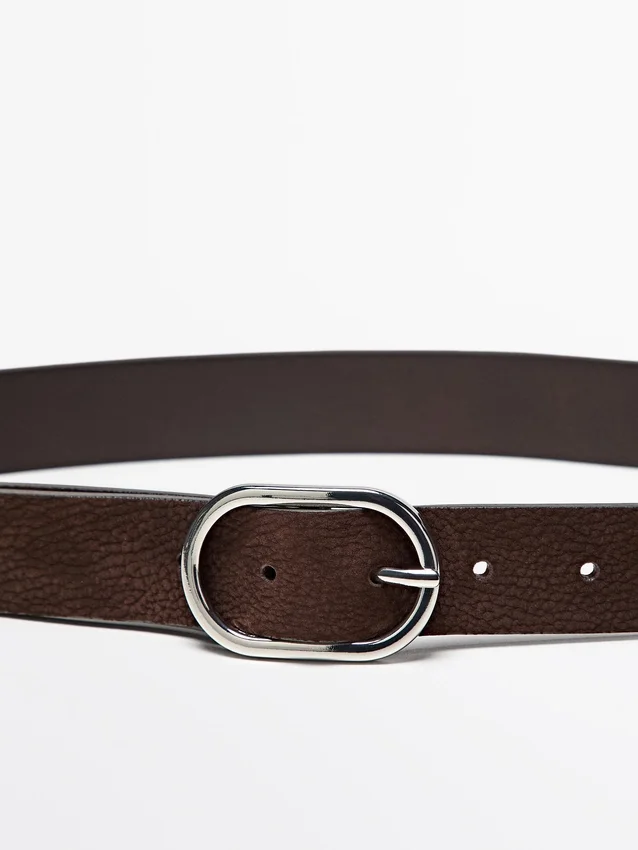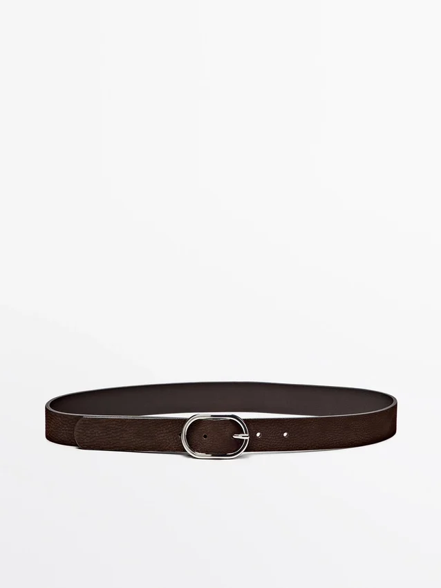 Skärp i nubuckläder med ovalt spänne