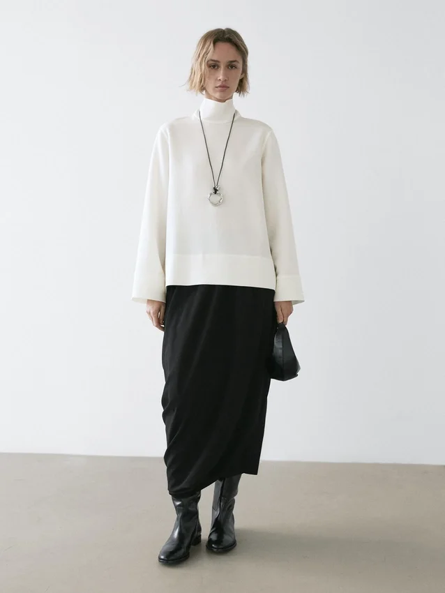 Bli först med att recensera ”Blus med hög hals och detalj vid fållen”
