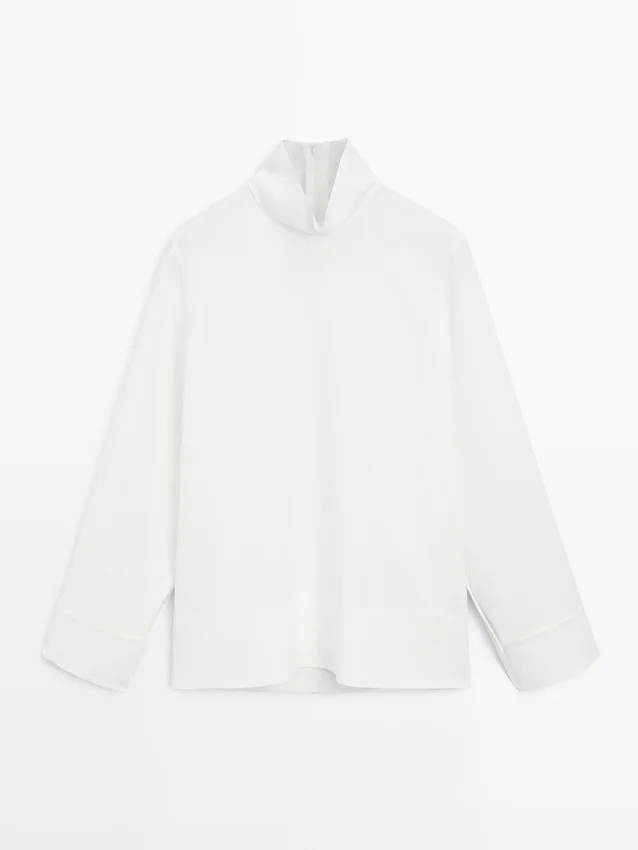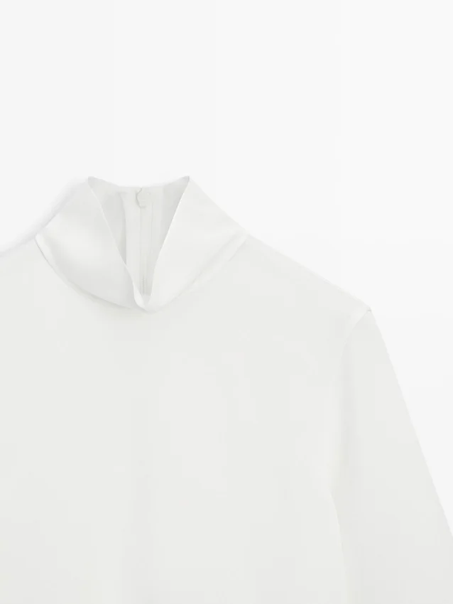 Blus med hög hals och detalj vid fållen
