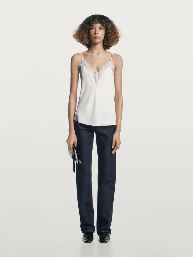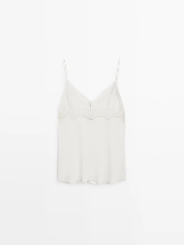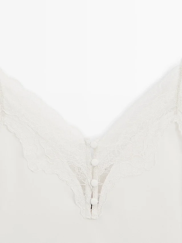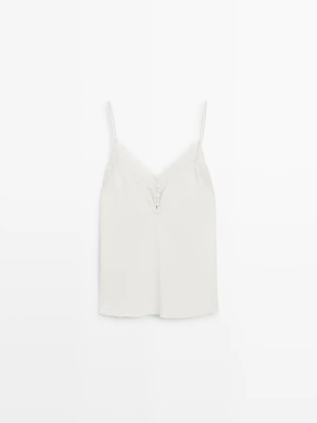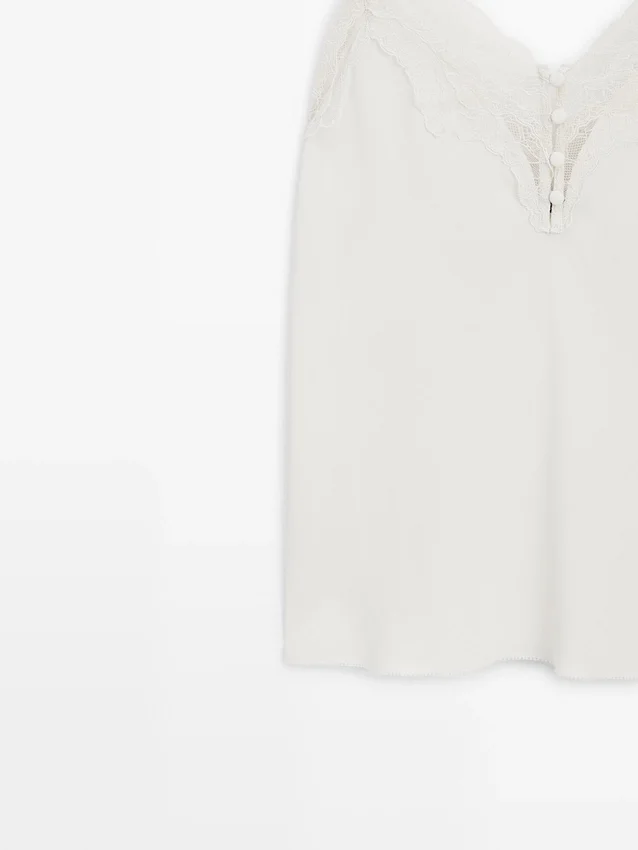 Camisole-top. Spaghettiband. Spetsdetaljer. Täckta knappar.