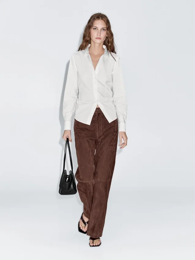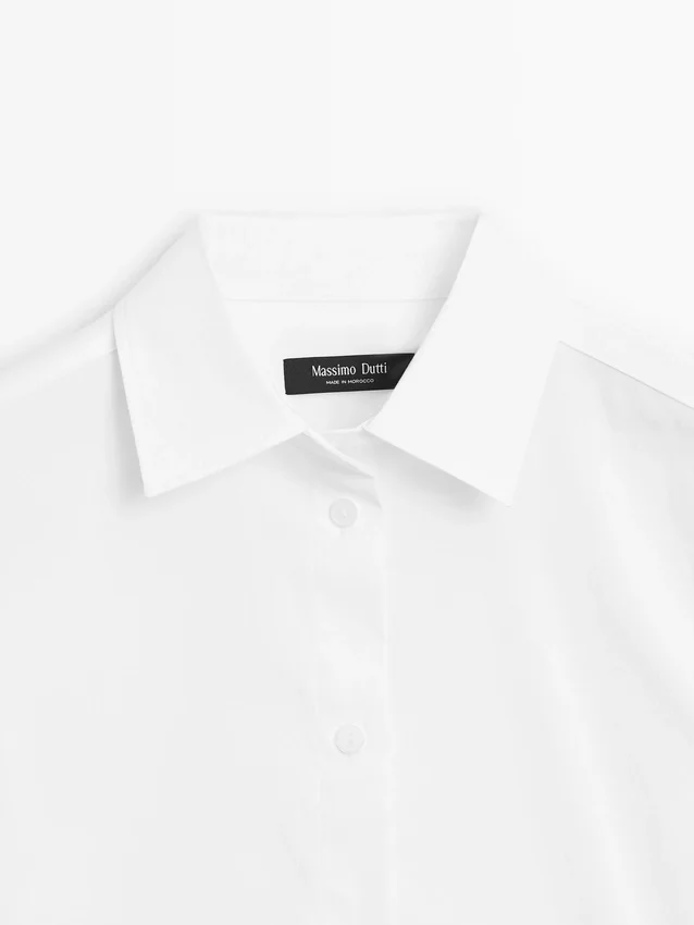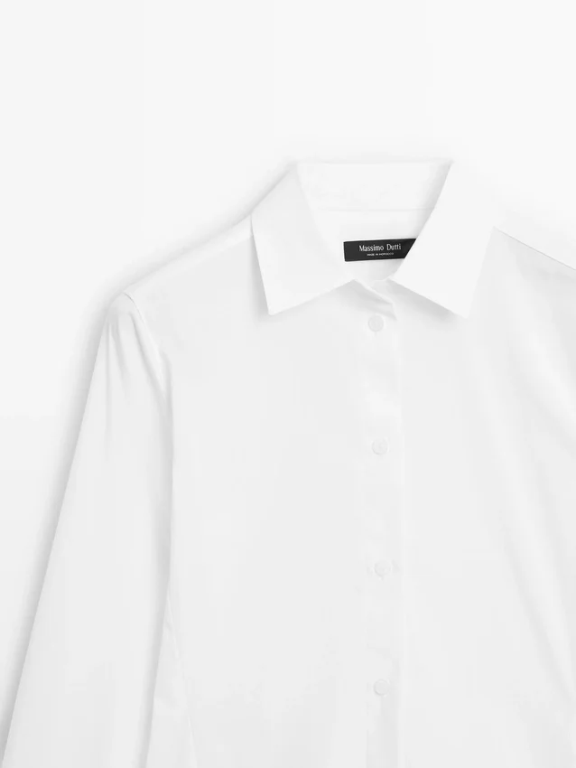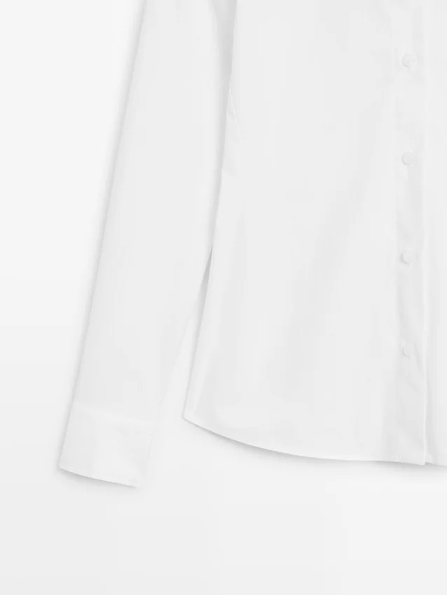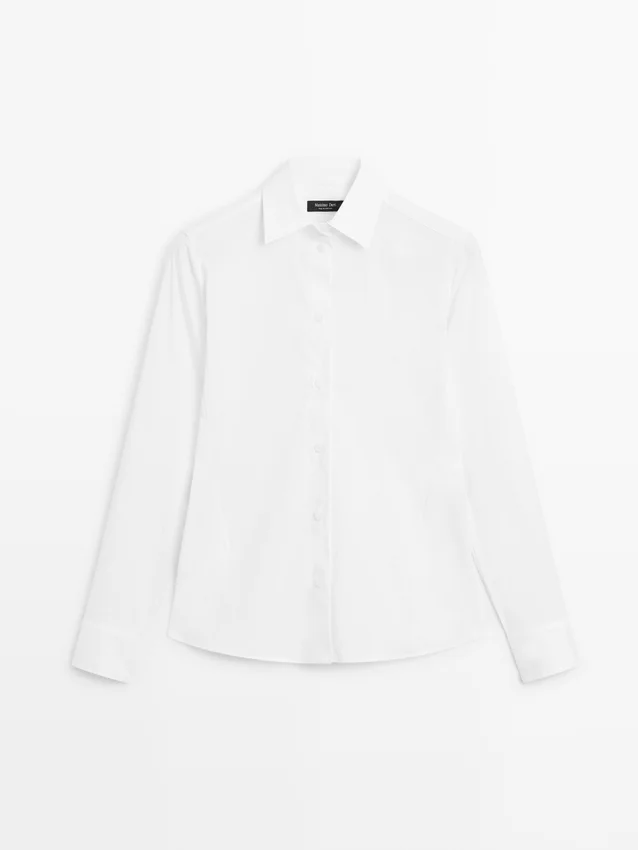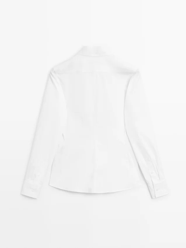 Skjorta tillverkad av bomullsblandat tyg. Något figursydd silhuett som ger ett mer definierat och smalt utseende.