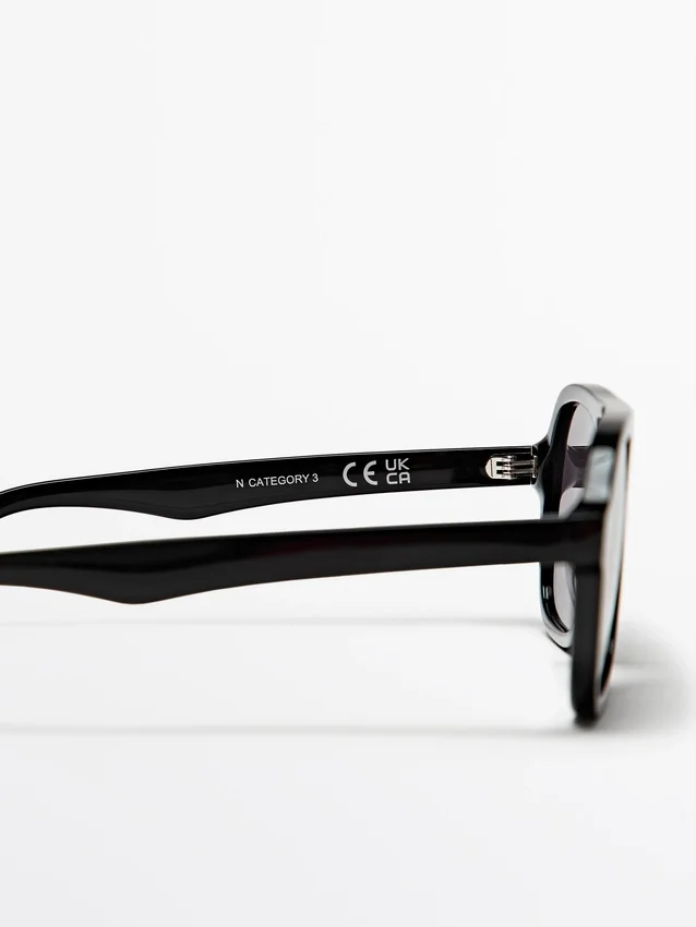 Solglasögon i plast. Linser med UV-skyddsfilter i kategori 3. Inkluderar ett skyddsfodral.