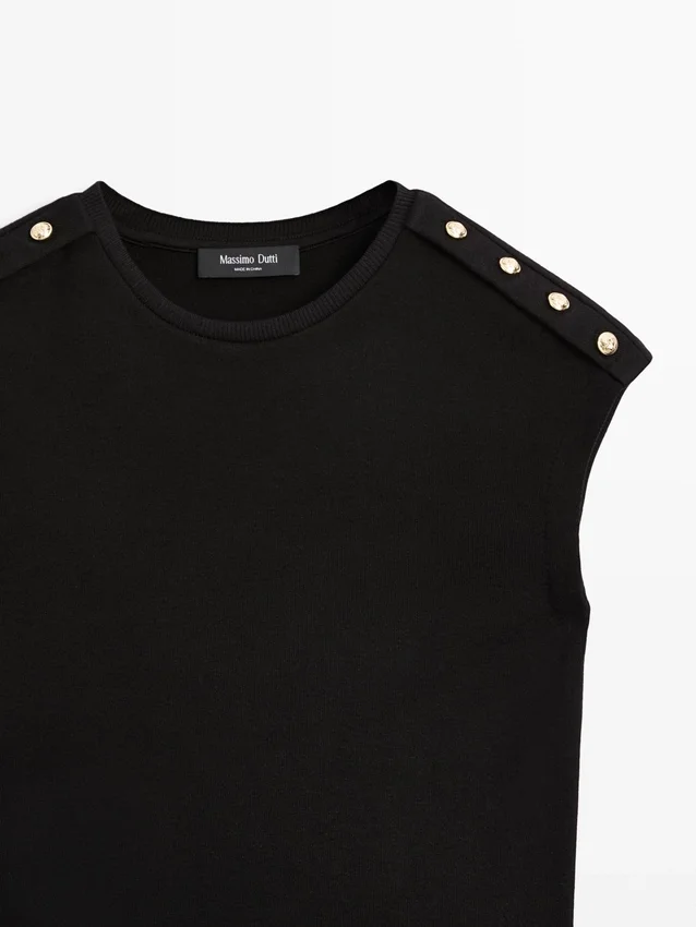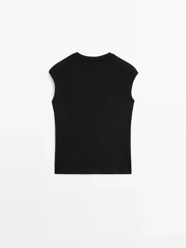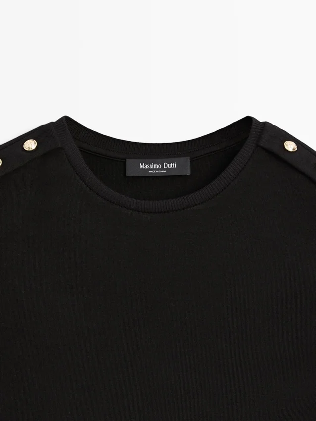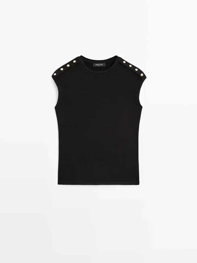 T-shirt med droppärmar och knappdetaljer