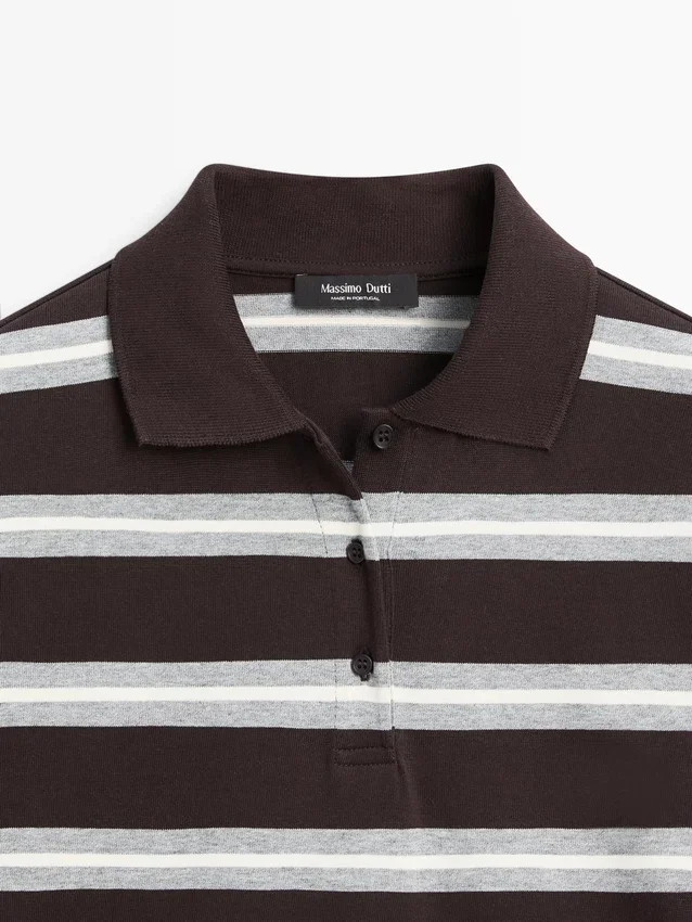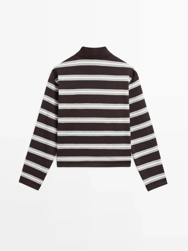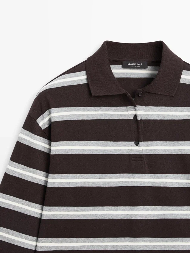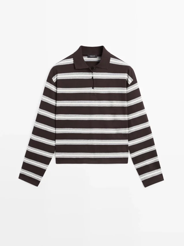 Pikétröja tillverkad av 100 % bomull. Långa ärmar. Polokrage med knäppning. Randigt tryck.