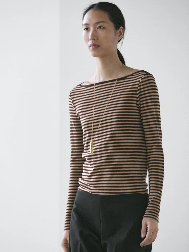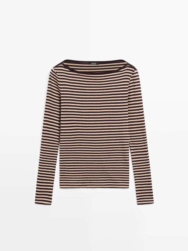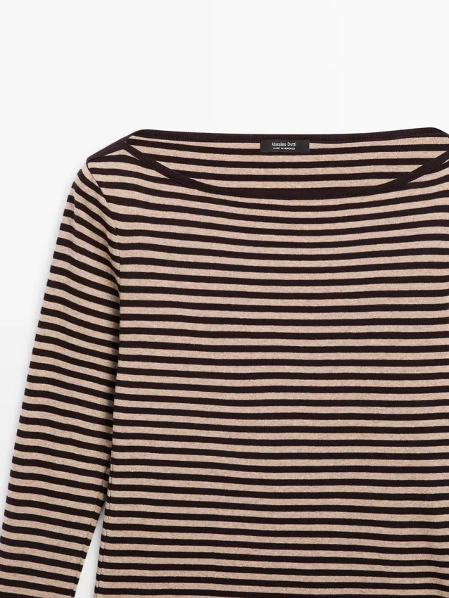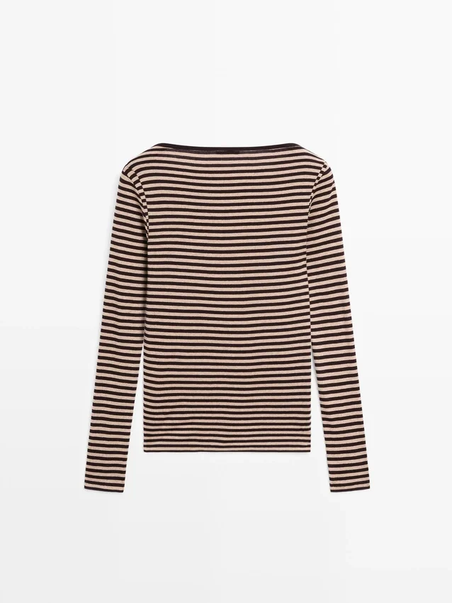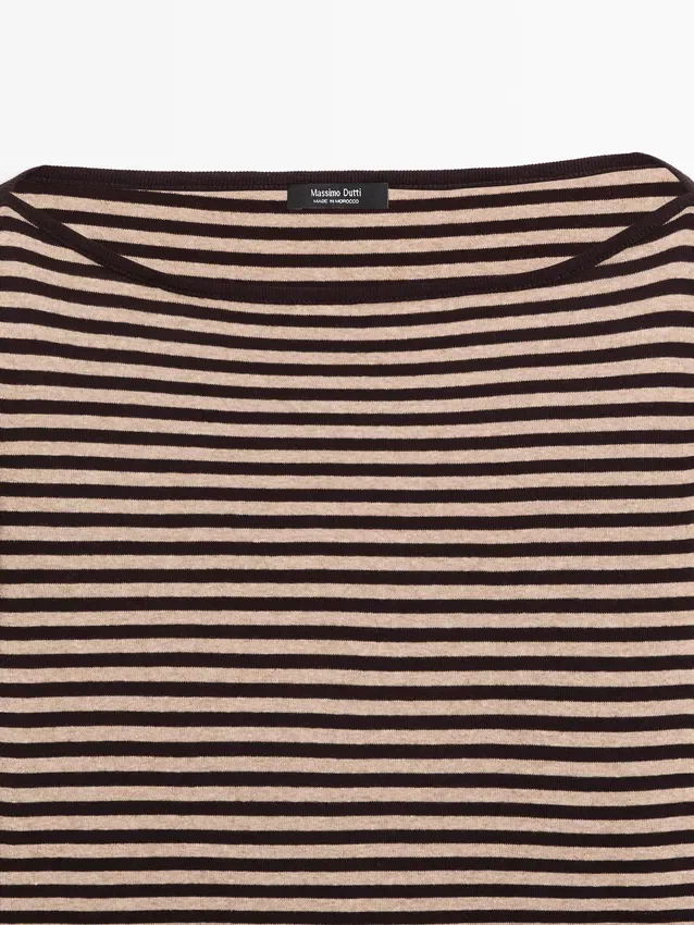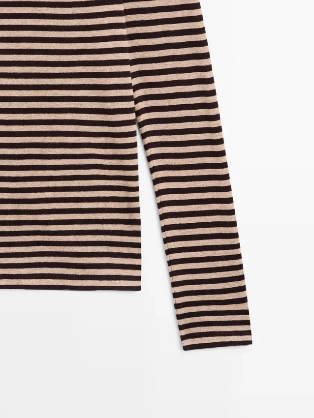 T-shirt tillverkad av bomull. Rund hals. Långa ärmar. Randigt tryck.