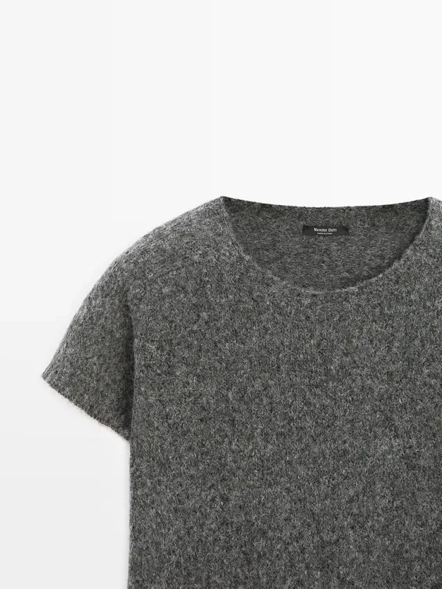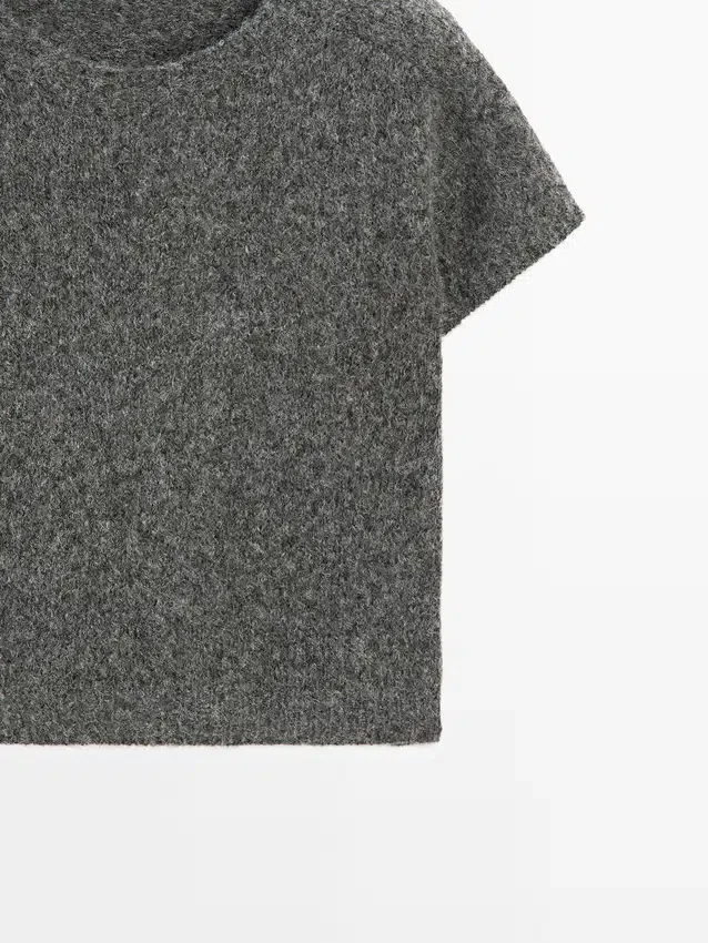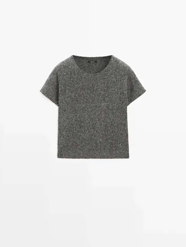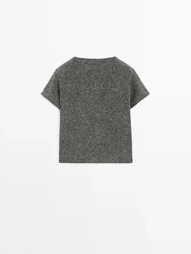 Stickad tröja tillverkad av en blandning av ull och alpacka. Rund hals. Korta ärmar. Ribbade kanter. Mjukt tyg som är behagligt mot huden.
