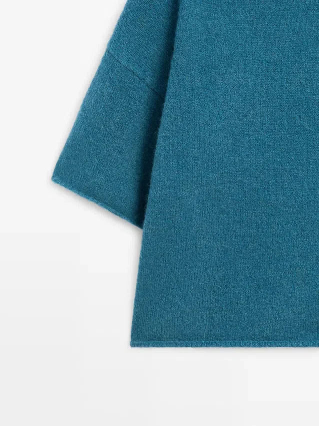 Stickad tröja tillverkad av en alpacablandning. Rund hals. Korta ärmar. Oversize.