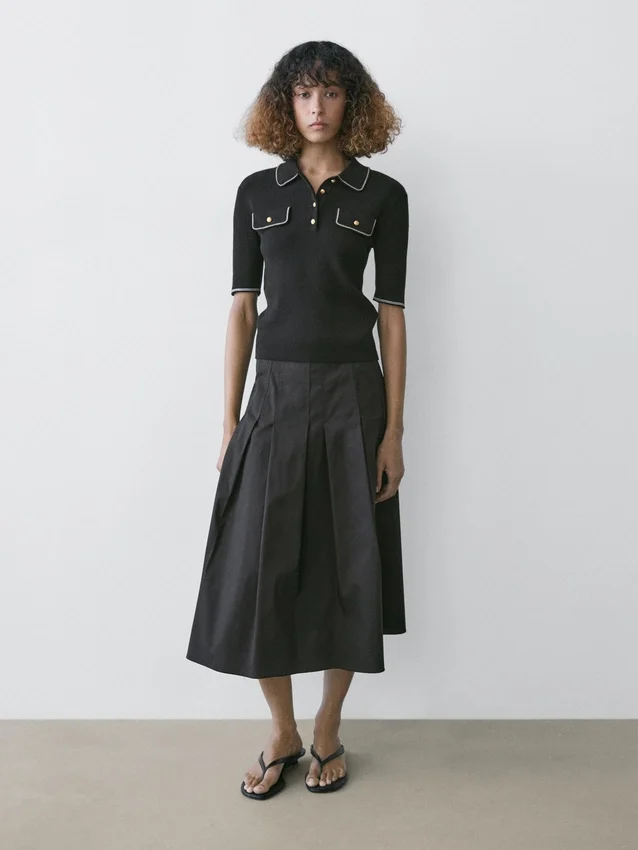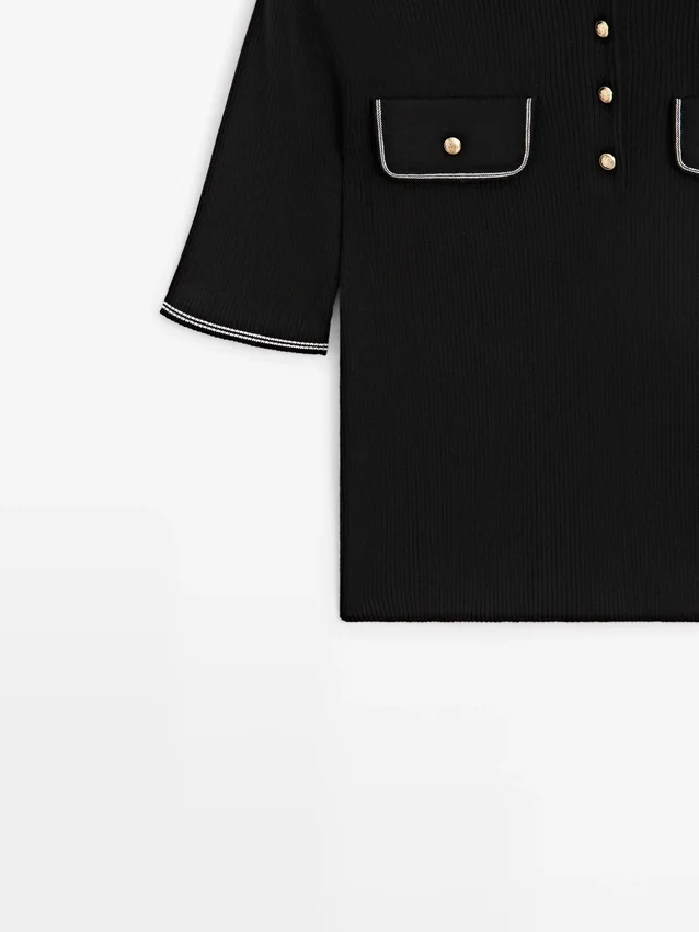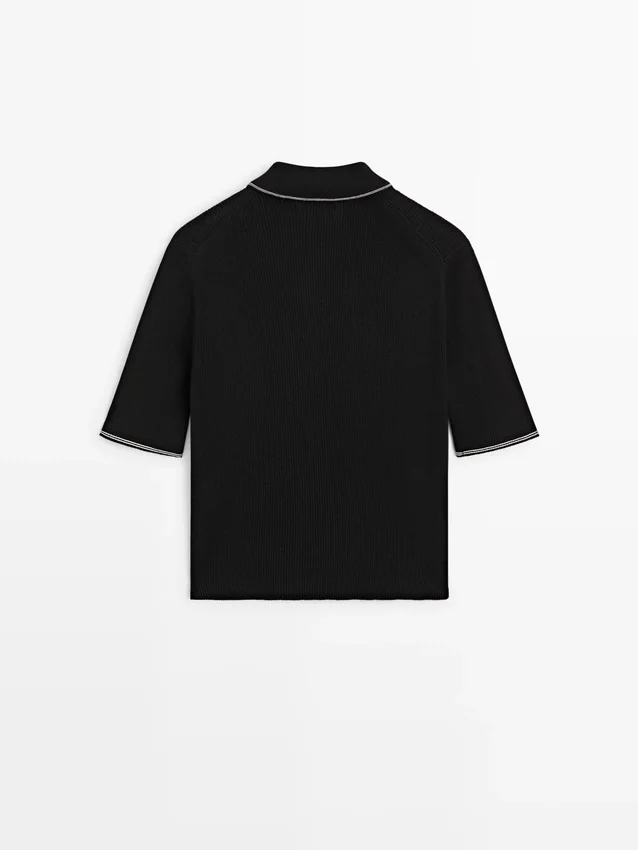 Pikétröja i bomullstrikå med kontrastdetaljer
