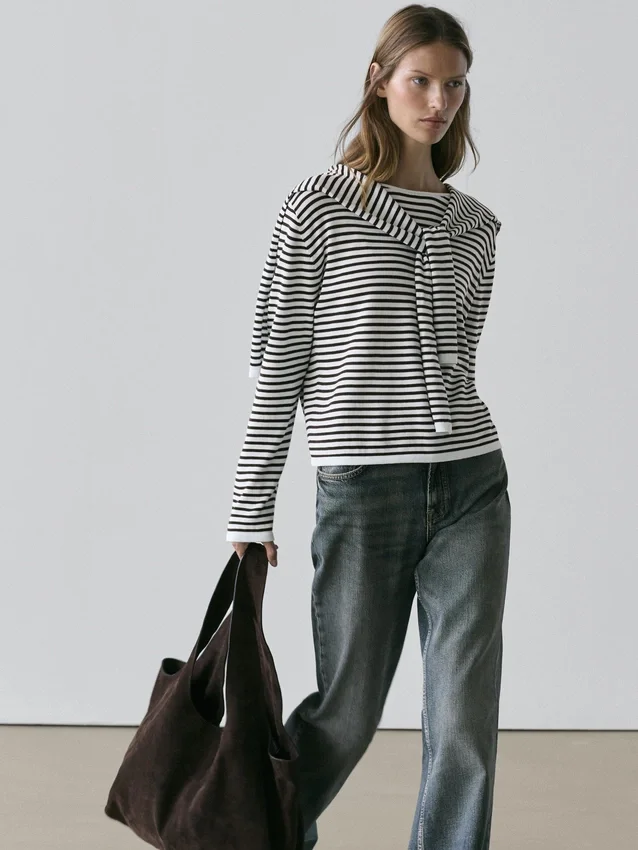 Randig stickad tröja med detalj på ärmen