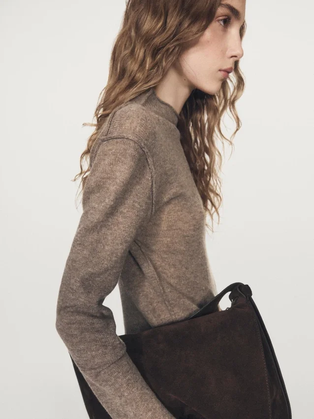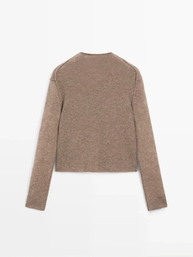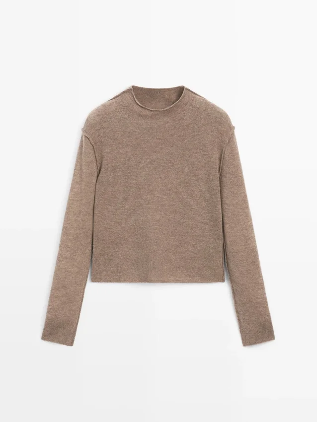 Stickad tröja tillverkad av ett tyg av ullblandning. Falskt höghalsat. Långa ärmar. Sömdetaljer.