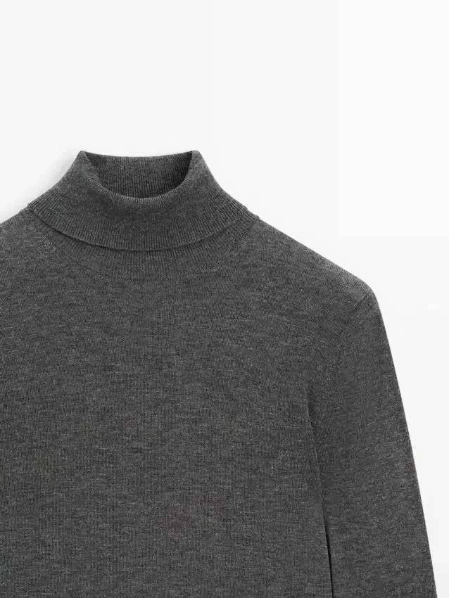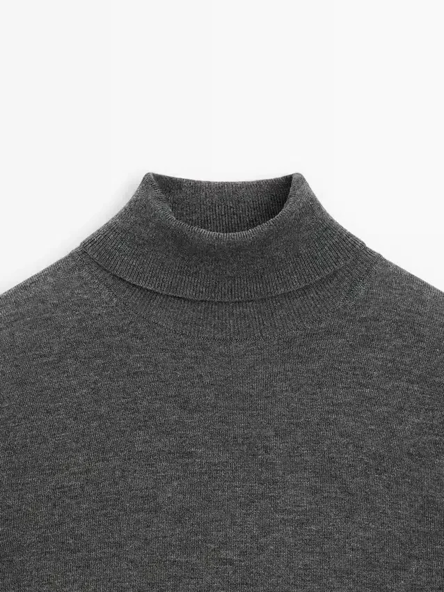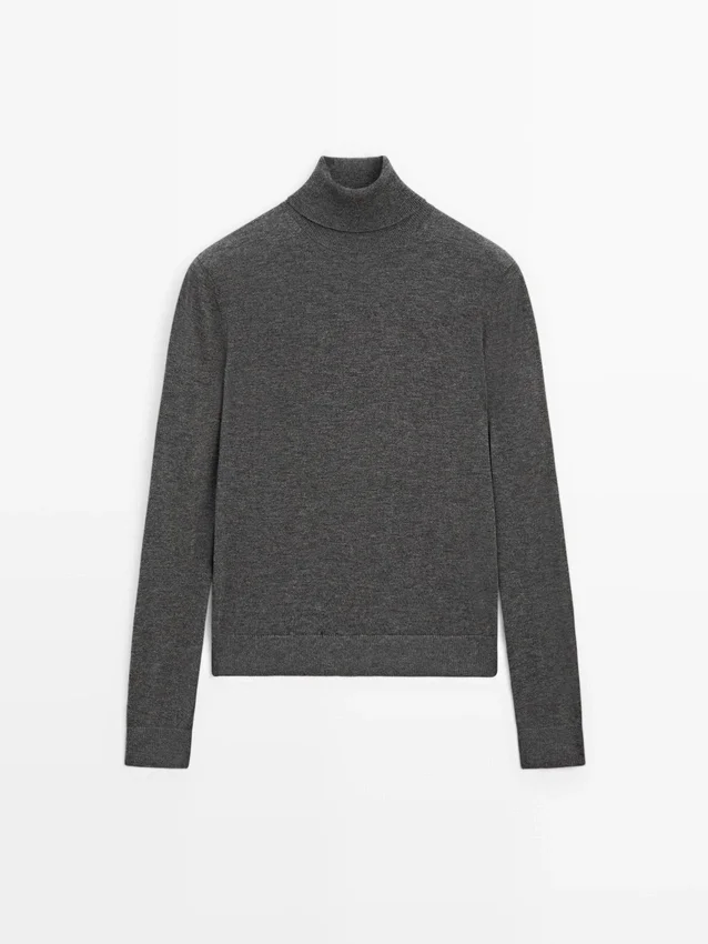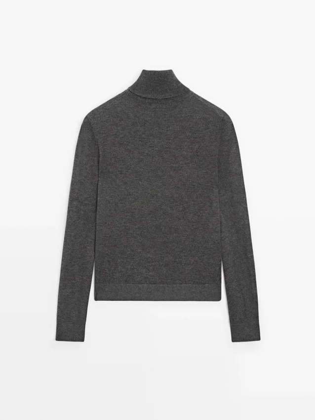 Stickad tröja i ullblandning med hög hals