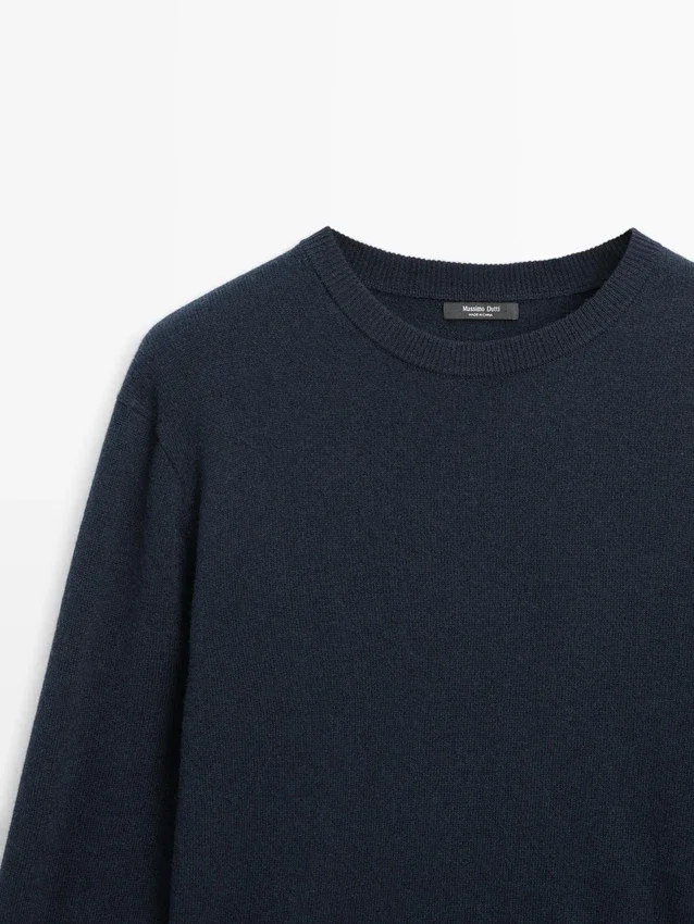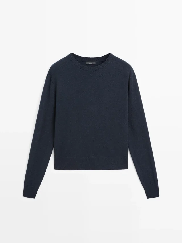 Tröja tillverkad av ett tyg av ullblandning. Rund hals. Långa ärmar. Ribbade kanter.