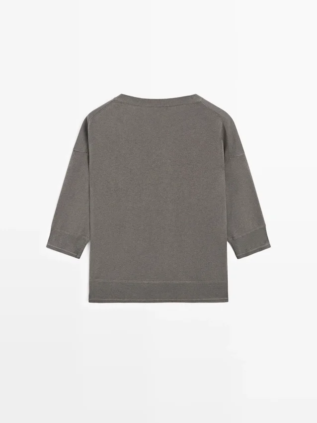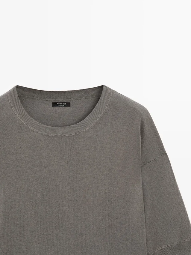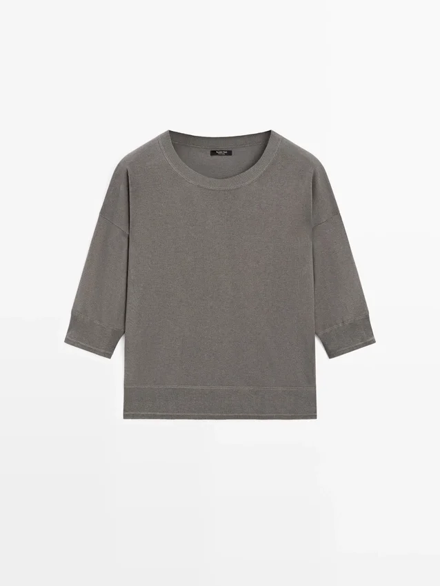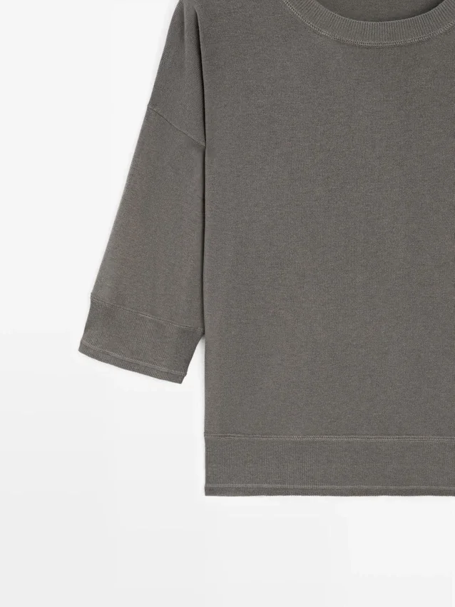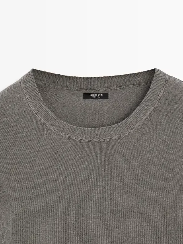 Rund hals. Armlängd till armbågen. Ribbade kanter .Sammansättning