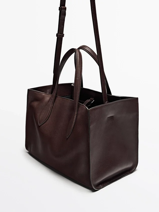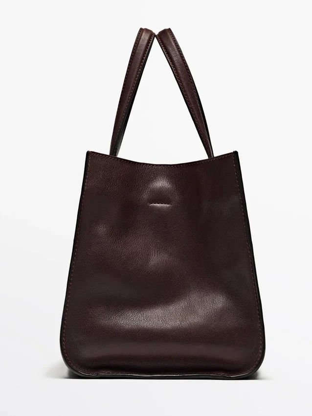 Tote-väska tillverkad av nötläder med nappa-finish. Justerbar axelrem.