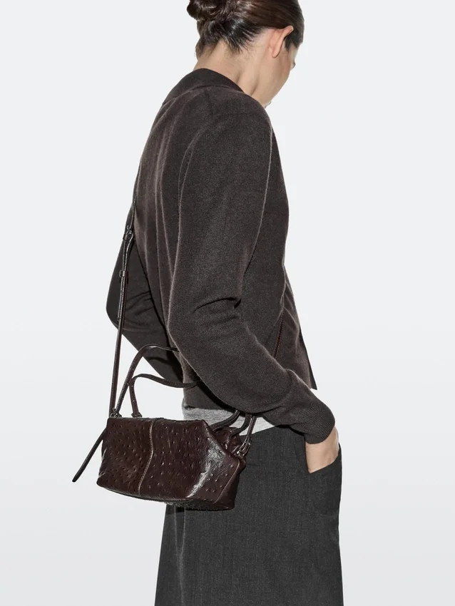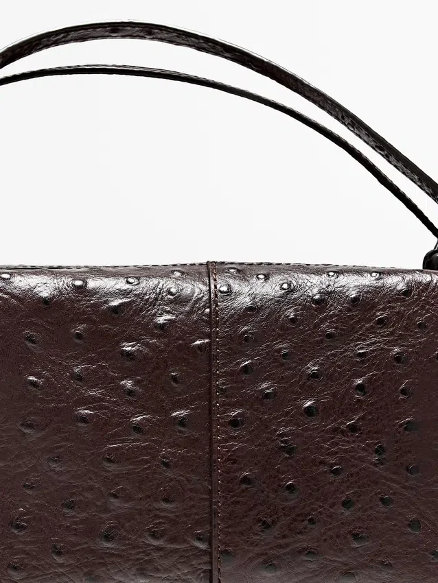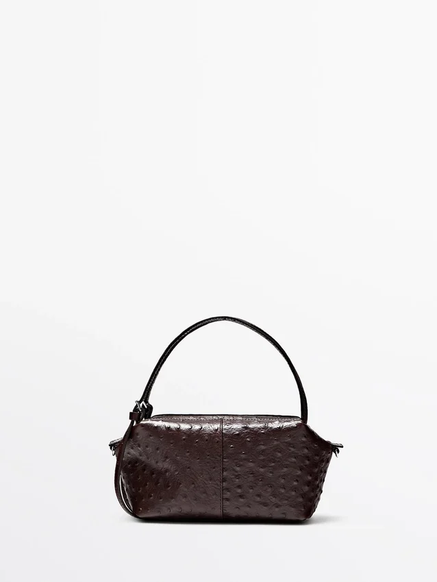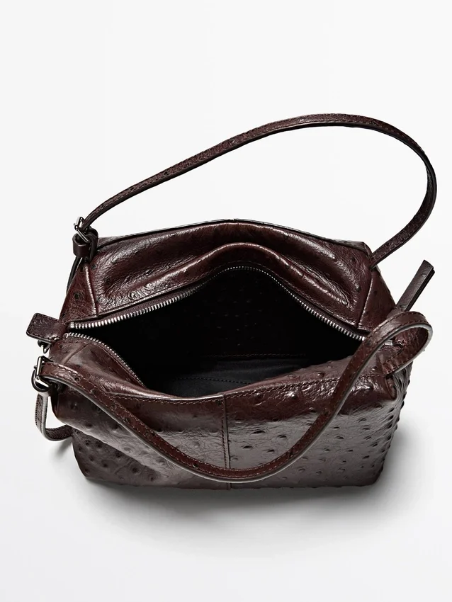 Handväska i nötläder. Dragkedja. Två handtag och ett justerbart axelband. En innerficka. Foder i bomull. Läderdetaljer med strukturerad yta.