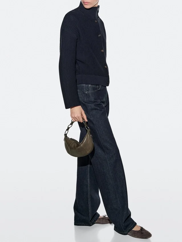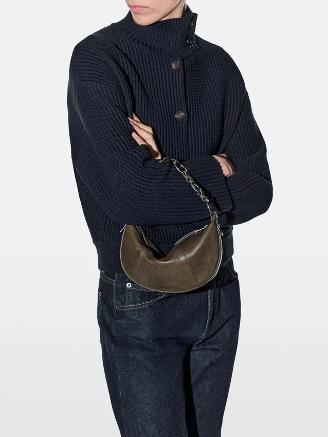 Minihandväska tillverkad av nötläder med nappa-finish. Ett handtag/axelrem. Dragkedja. Bomullsfoder.