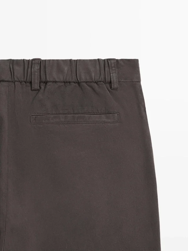 Jogger-passform: Denna passform har en elastisk och justerbar midja, och benen är vanligtvis något åtsittande, vilket ger en avslappnad men ändå modern stil. Midjeband med bälteshällor. Dragkedja och knäppning fram. Två sidfickor.