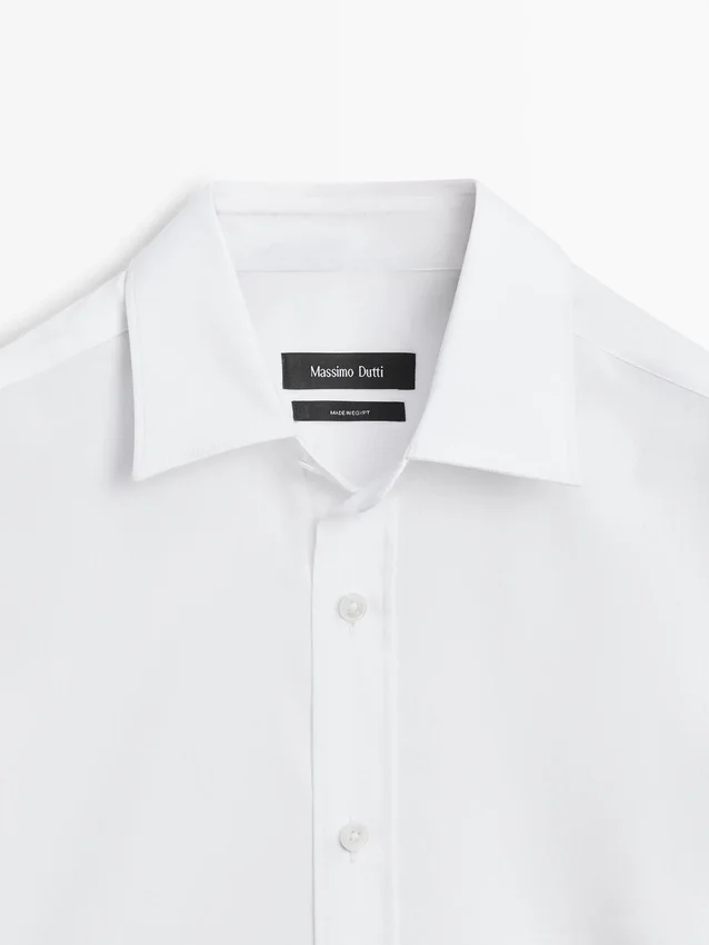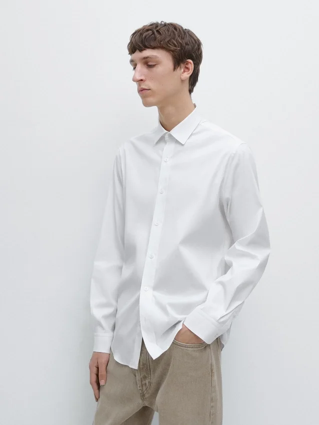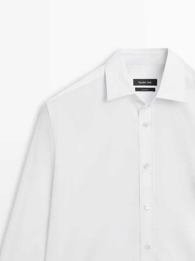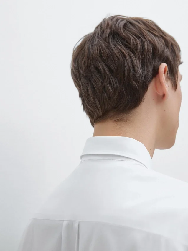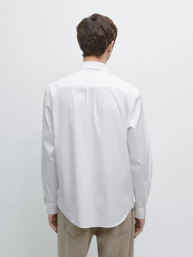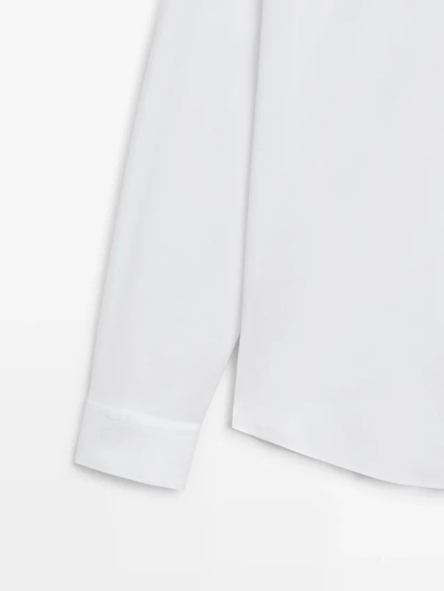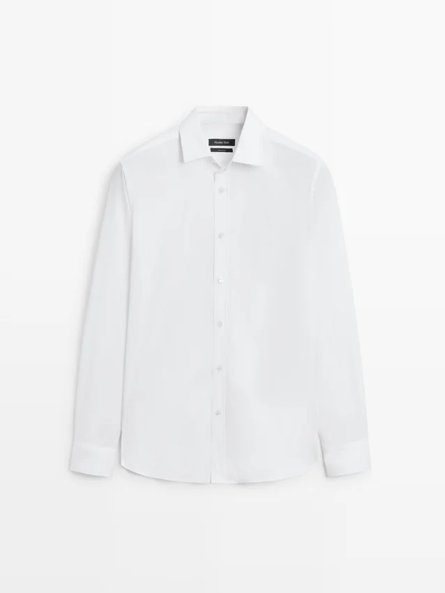 Skjorta tillverkad av stretchtyg. Slim Fit-skjorta: Denna passform har en något åtsittande silhuett, som sitter tätt över överkroppen, axlarna och armarna, vilket ger ett mer definierat och smalare utseende. Skjorta tillverkad av bomullsblandat tyg. Långa ärmar med knäppta manschetter. Skjortkrage. Knäppning fram.