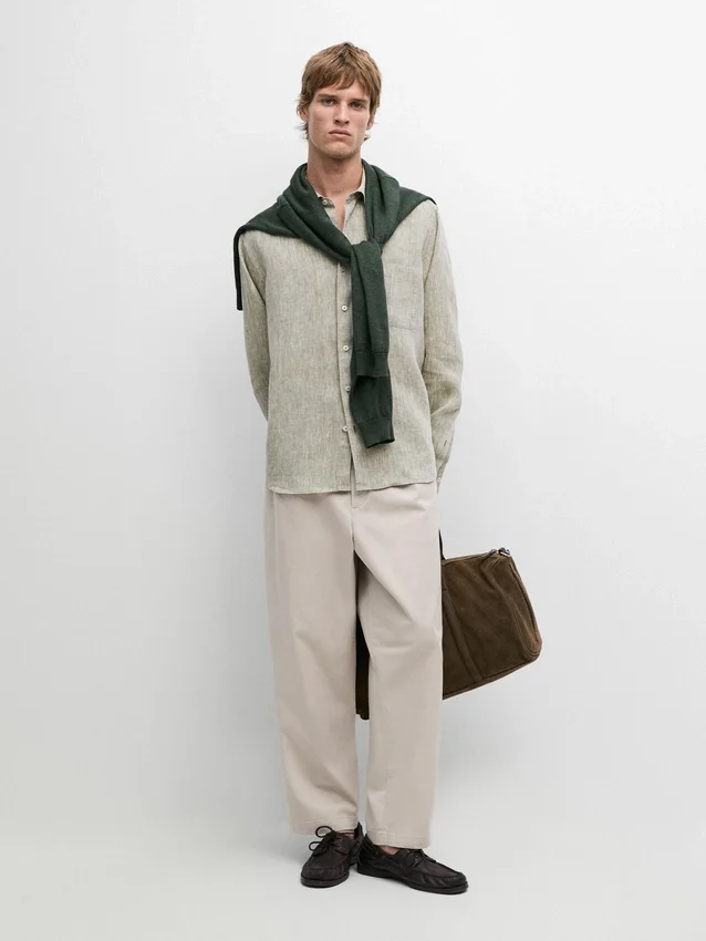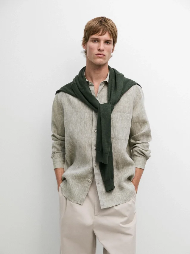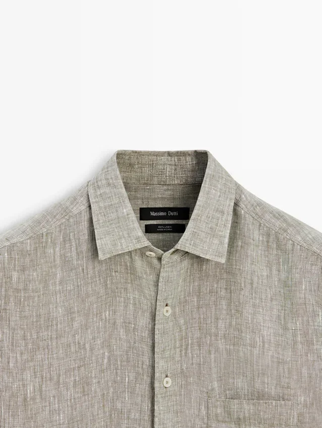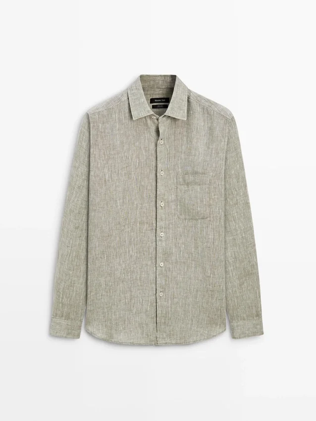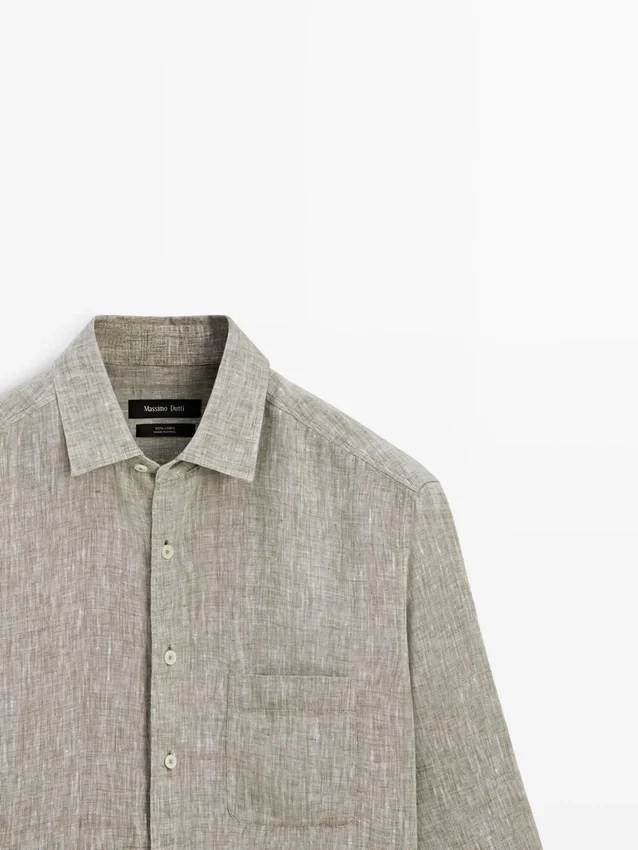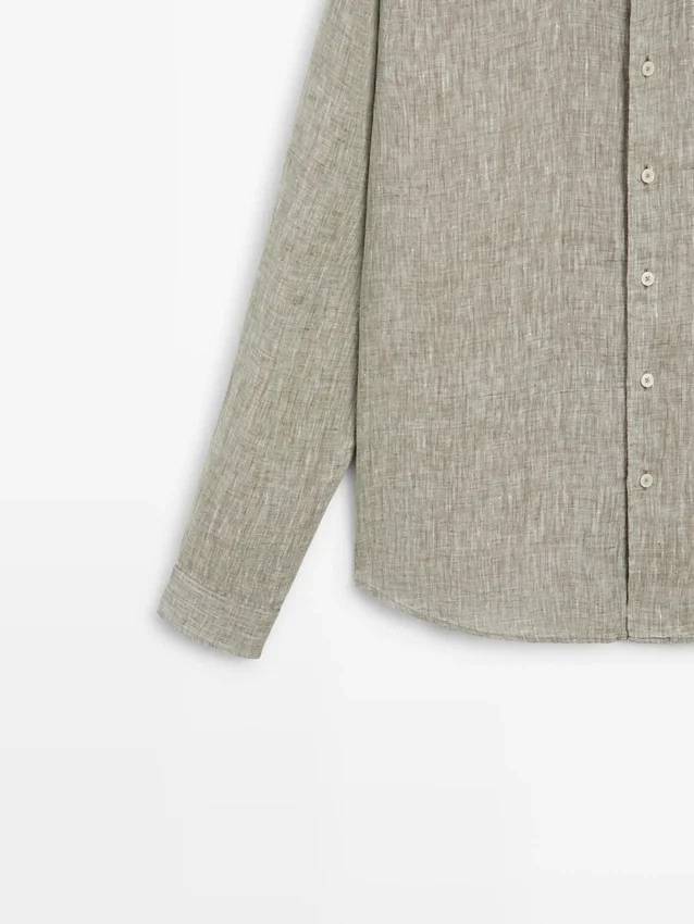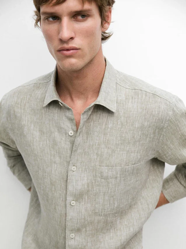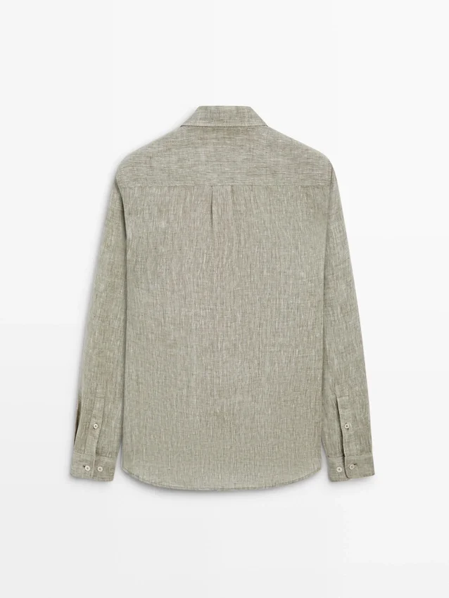 Skjorta tillverkad av 100 % linne. Långa ärmar med knäppta manschetter. Skjortkrage. Knäppning fram. Påsficka på bröstet. Fint, lätt tyg.