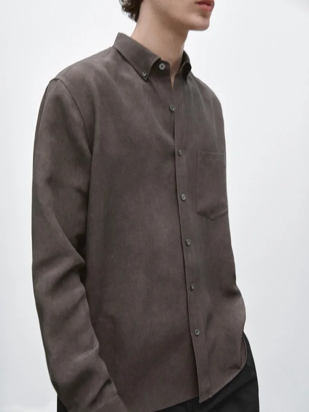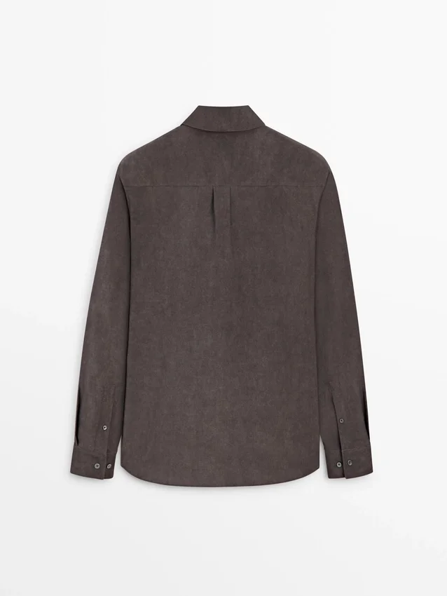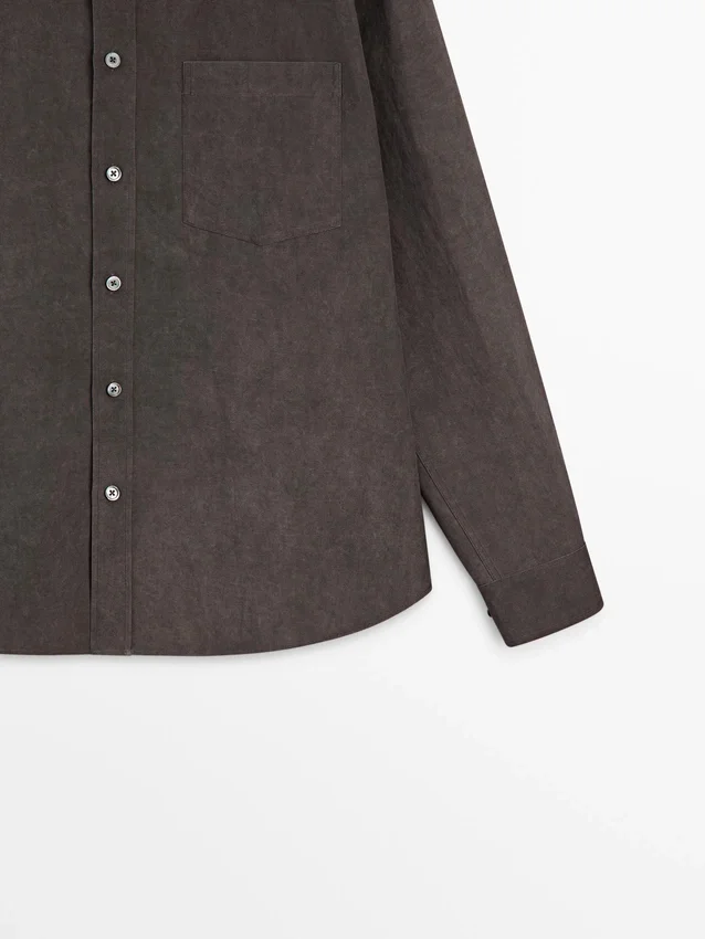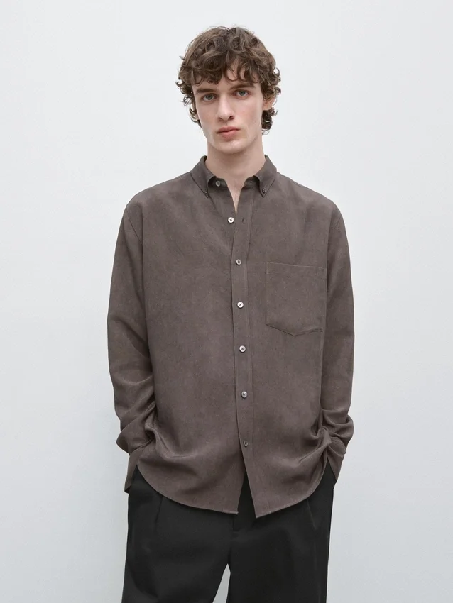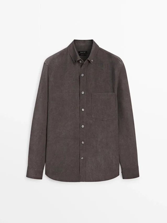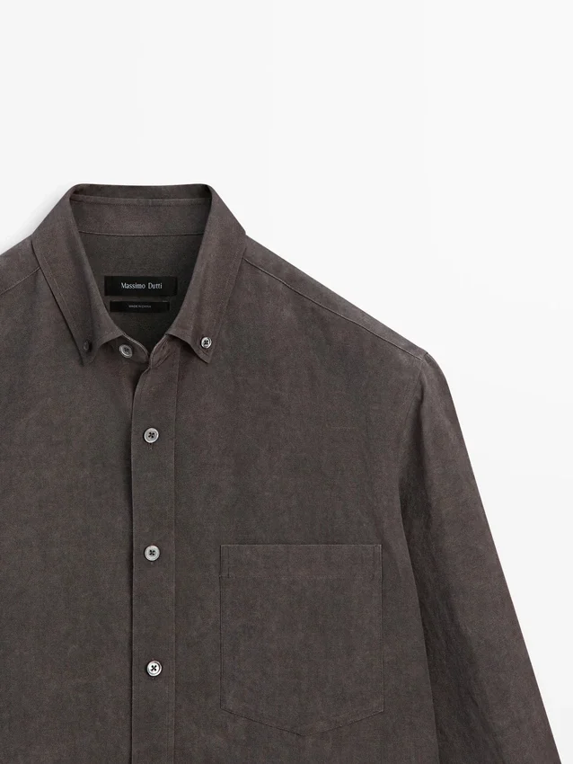 Skjorta tillverkad av ett tyg i lyocellblandning. Långa ärmar med knäppta manschetter. Skjortkrage. Knäppning fram.