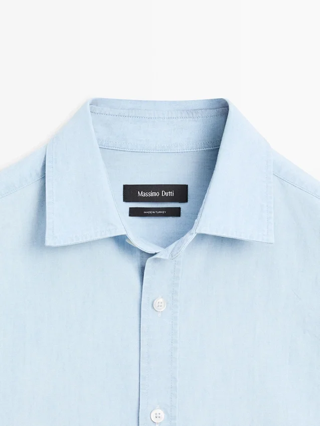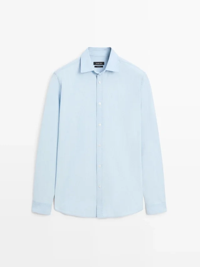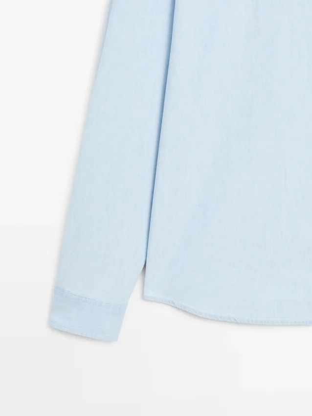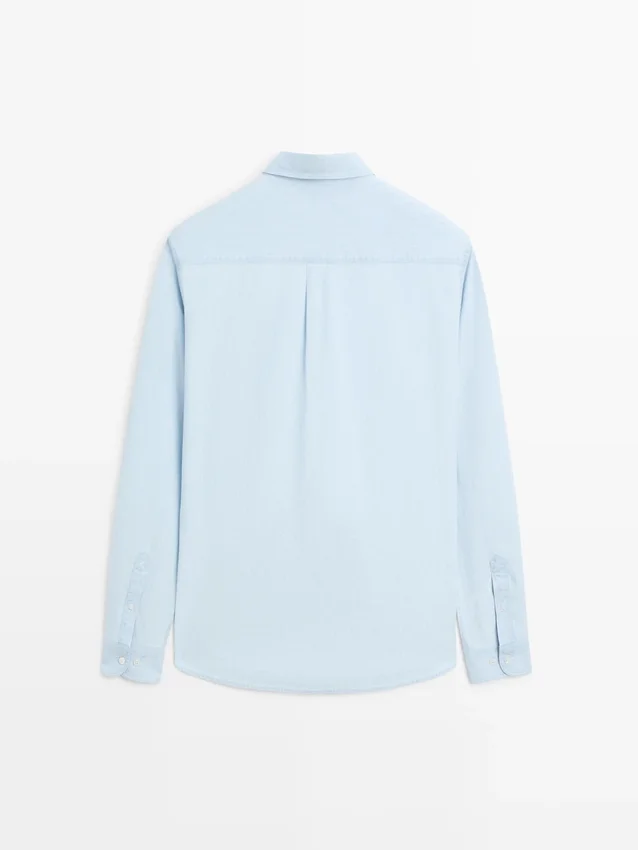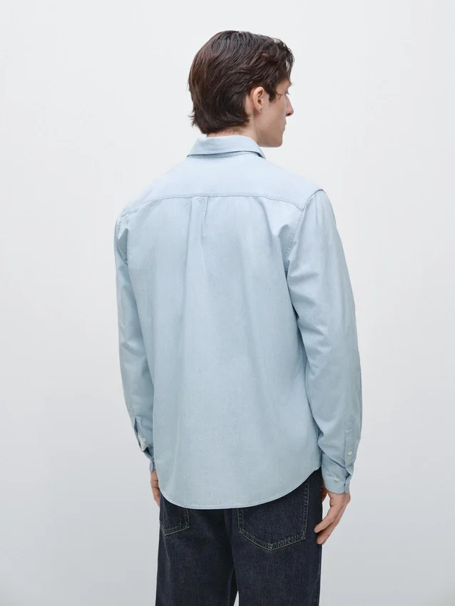 Skjorta tillverkad av 100 % bomullstyg med denimfinish. Långa ärmar med knäppta manschetter. Skjortkrage. Regular Fit: Denna passform erbjuder komfort med lite mer utrymme i överkroppen. Knäppning fram.