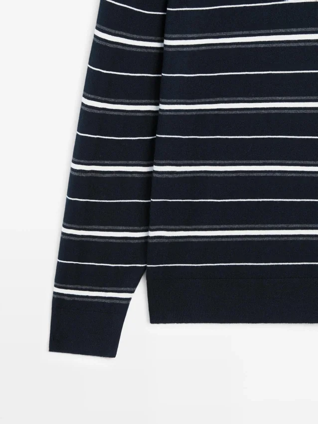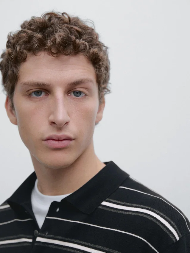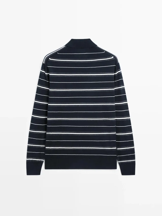 Långa ärmar. Pikétröja med knäppning. Randigt tryck.