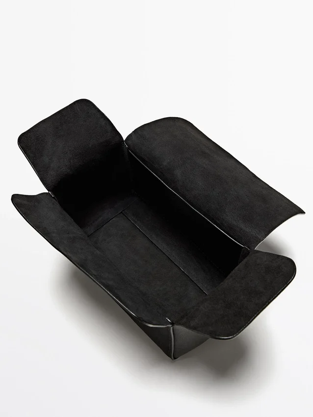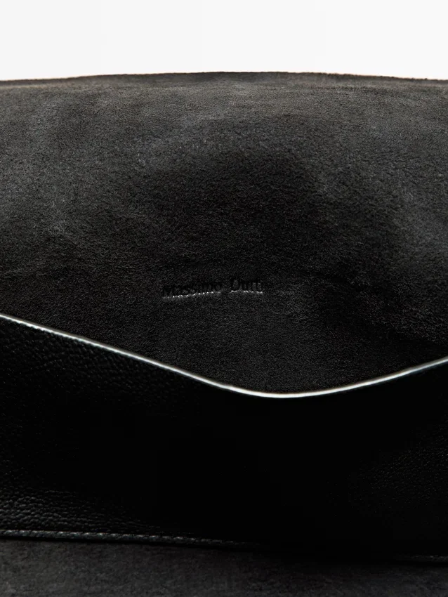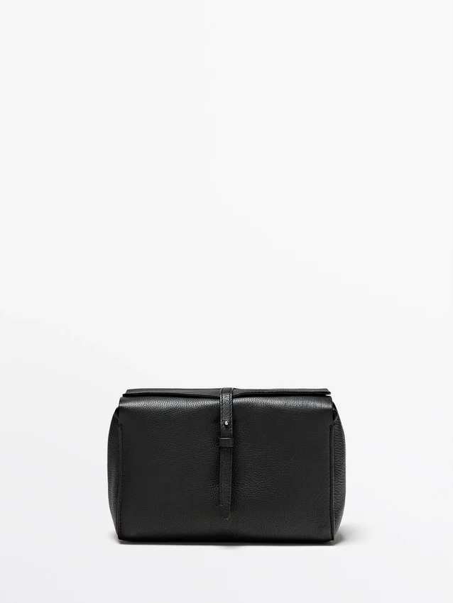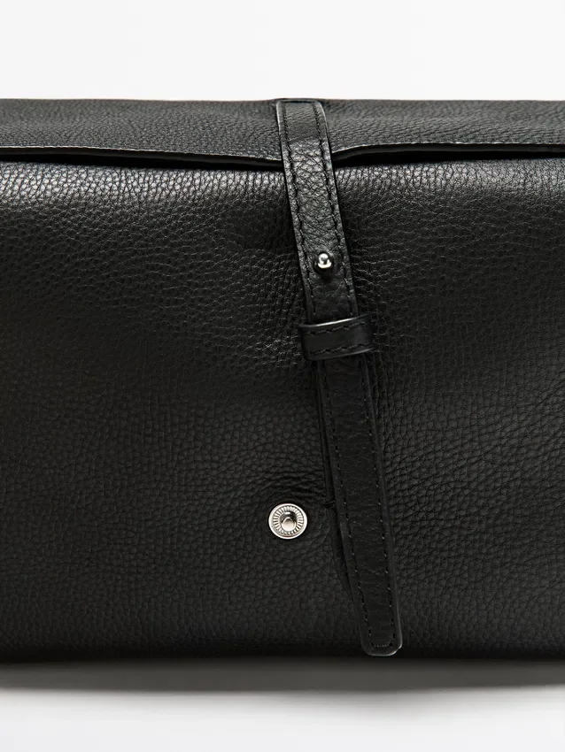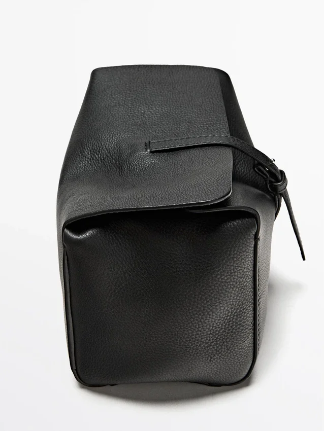 Toalettväska tillverkad av kohud med nappaläderfinish. Dold tryckknappsförslutning.